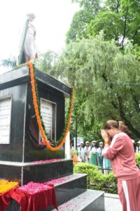 कैबिनेट मंत्री रेखा आर्या ने आज प्रधानमंत्री नरेन्द्र मोदी के आह्वाहन पर ‘हर घर तिरंगा अभियान” के तहत देहरादून के गांधी पार्क से परेड ग्राउंड तक भव्य तिंरगा यात्रा का शुभारंभ किया। यात्रा के शुभारंभ से पूर्व उन्होंने महात्मा गांधी और शहीदों की प्रतिमा पर पुष्पांजलि और श्रद्धासुमन अर्पित किए।