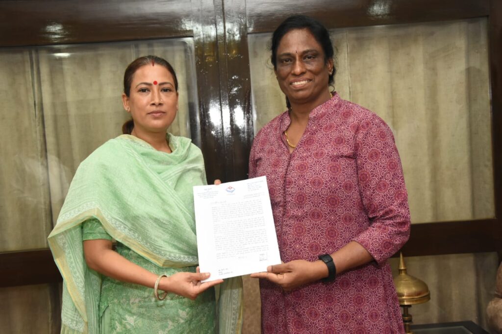 दिल्ली: गुरुवार को खेल मंत्री रेखा आर्या ने नई दिल्ली में भारतीय ओलंपिक संघ की अध्यक्ष पी.टी उषा व संघ के अन्य पदाधिकारियों से भेंट की।