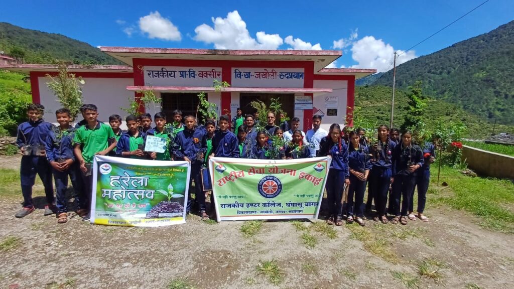 इसी क्रम में जनपद रुद्रप्रयाग के दूरस्थ राजकीय इंटर कॉलेज घंगासू बांगर के शिक्षकों ने NSS के सभी छात्रों के साथ मिलकर क्षेत्र में वृक्षारोपण किया, वहीं “एक पेड़ माँ के नाम” ‘रोपण से पोषण’ का नारा देकर पर्यावरण के प्रति जागरूक रैली निकाल कर लोगों को जागरूक किया। इसके साथ ही घंगासू बांगर से ग्राम सभा बक्सीर बांगर तक वृक्षारोपण किया गया।