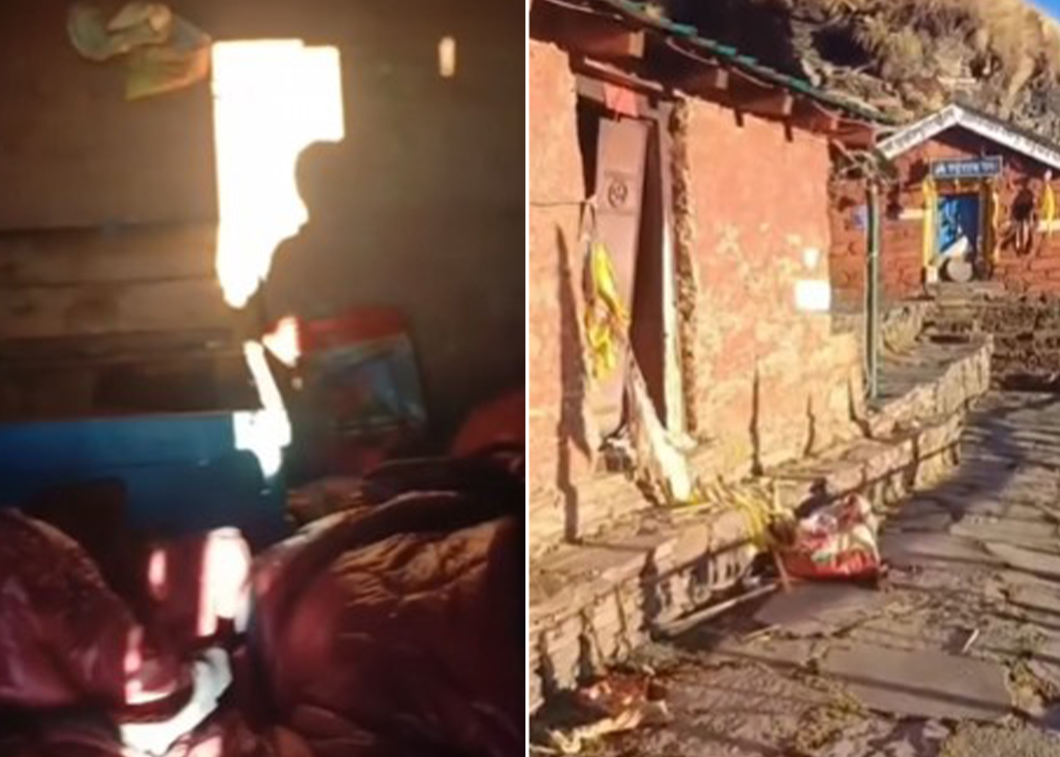 रुद्रनाथ मंदिर में भी अब भालू का हमला। दरवाजा तोड़कर अंदर रखे सामग्री को नुकसान पहुंचाया गया। भालू ने मंदिर का पूरा सामान तहस- नहस कर दिया है।