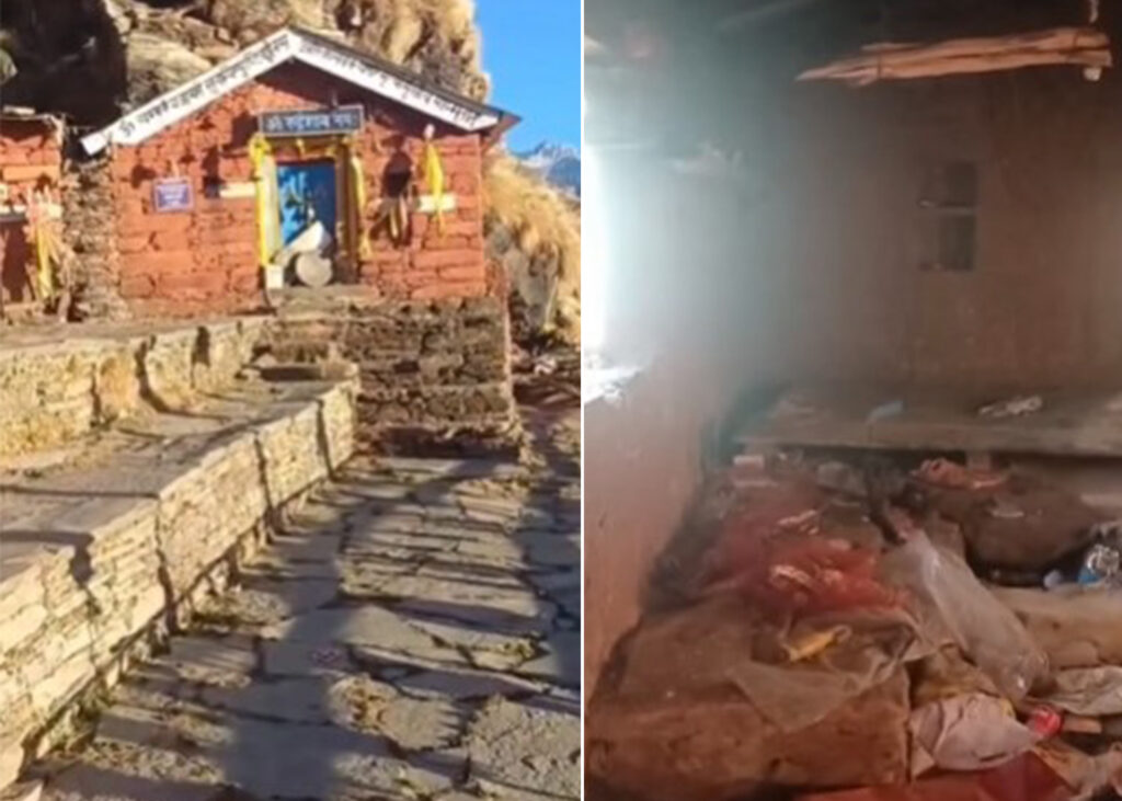 रुद्रनाथ मंदिर में भी अब भालू का हमला। दरवाजा तोड़कर अंदर रखे सामग्री को नुकसान पहुंचाया गया। भालू ने मंदिर का पूरा सामान तहस- नहस कर दिया है।